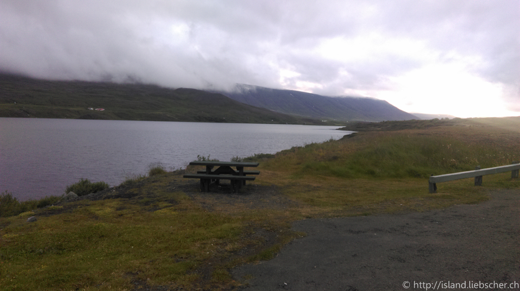 Etwas enttäuscht bezogen wir unser Nachtlager auf einem Parkplatz mit Seesicht bei Hàls.